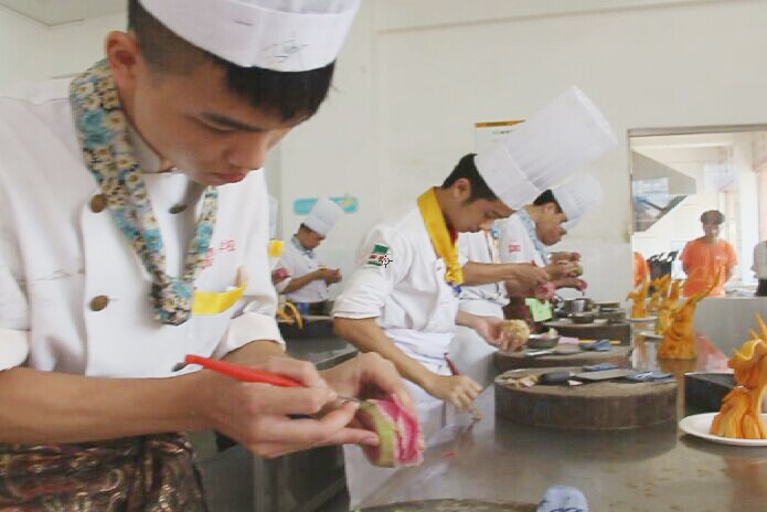 8月22日上午,广西华南烹饪学校明秀校区金牌四班班迎来了属于他们的毕业考试。炎日的夏季丝毫没有影响到同学们的热情,为了迎接考试同学们早早开始了进入准备阶段,本次考试内容包括《拼盘制作》、《雕刻技能》、《刀工技能》、《热菜技能》以及《中式烹调师中级理论》等科目。经过了前段时间的复习准备,同学们对考试显得很有信心,很多参加考试的同学表示,他们喜欢烹饪更希望能通过专业的学习将自己的整体水平提高上去,以适应社会不断发展的脚步。同时也希望同学们能够考出好成绩。