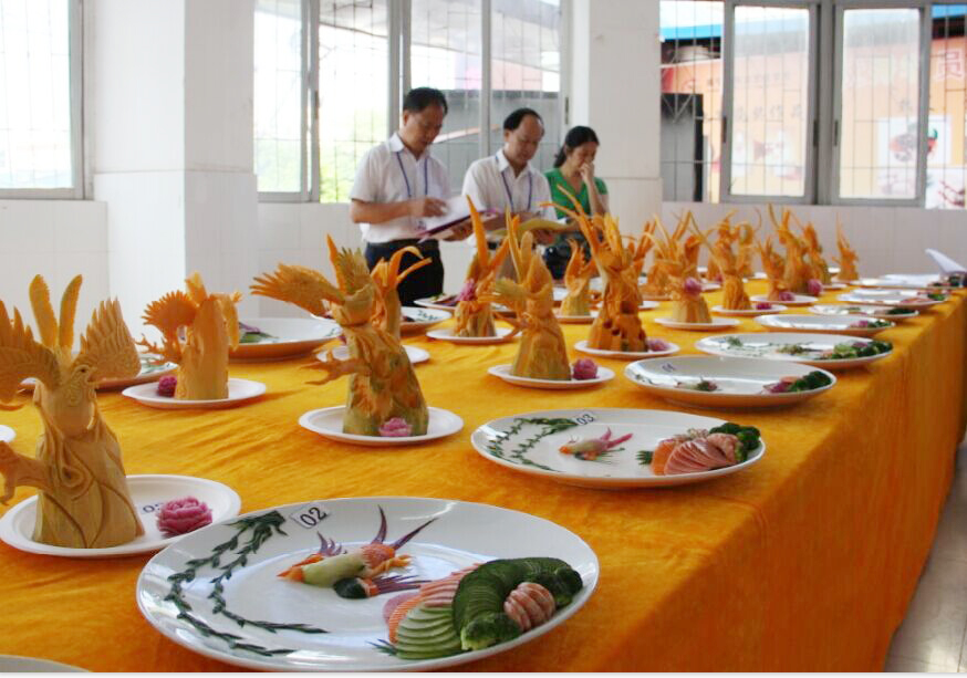 本次考试的评委有:中国烹饪协会理事、广西烹协常务理事、全国餐饮业国家一级评委、广西区烹饪协会常务副会长何逸奎、西园鉴定所刘桂林所长。