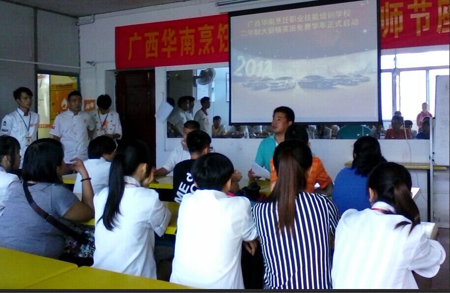 昨日,我校实施的报名学厨师暨两年制班级免费学车启动仪式在校多媒体功能举行。校区负责人朱伟、校区教务主任黄盛、教务科老师杨罗银、唐海涛、臧家辉及部分同学出席了启动仪式。