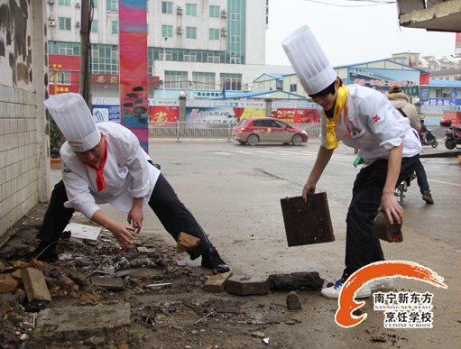 广西华南烹饪学校的学子在老师的带领下开始劳动,他们的任务是清除校道死角及绿化带的垃圾,任务最重,可是他们都积极参与,不怕脏、不怕累,干劲十足,坚决要消灭卫生死角。