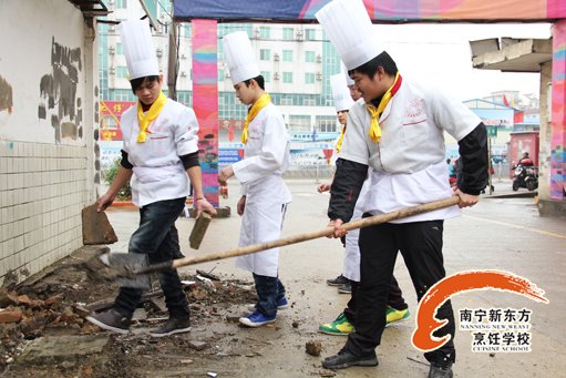 广西华南烹饪学校学子进行大扫除