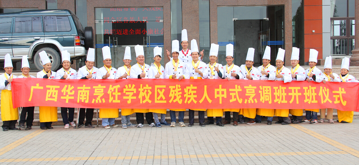 为贯彻落实《广西壮族自治区实施残疾人就业条例办法》精神,全面提高残疾人职业技能水平,促进残疾人适应就业市场需求,我校联合自治区残联举办2014年区残疾人中式烹调技能培训班,学员通过学习后能够掌握初级中式烹调的基础理论和操作技能等让学员结业后经考核合格可以取得初级中式烹调师职业资格证书,为就业打下良好的基础。