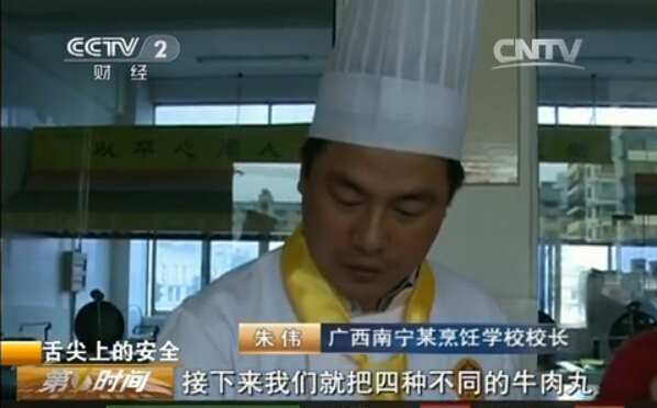 近日,广西电视台新闻频道走进广西华南烹饪学校,对我校广西厨师委员会会员、高级技师、高级考评员朱伟大师进行了采访录制真假牛肉丸辨别方法。自从电视节目播出后得到了来自央视、北京卫视、天津卫视等主流媒体的关注。这说明了人们对日常生活中的饮食安全更加的重视!