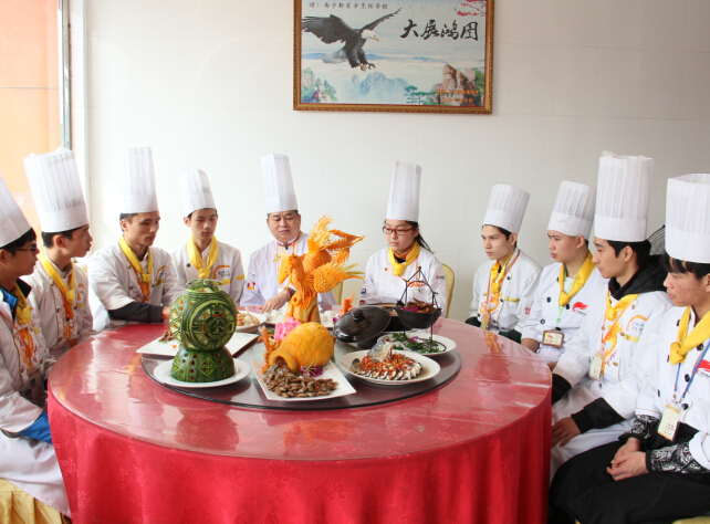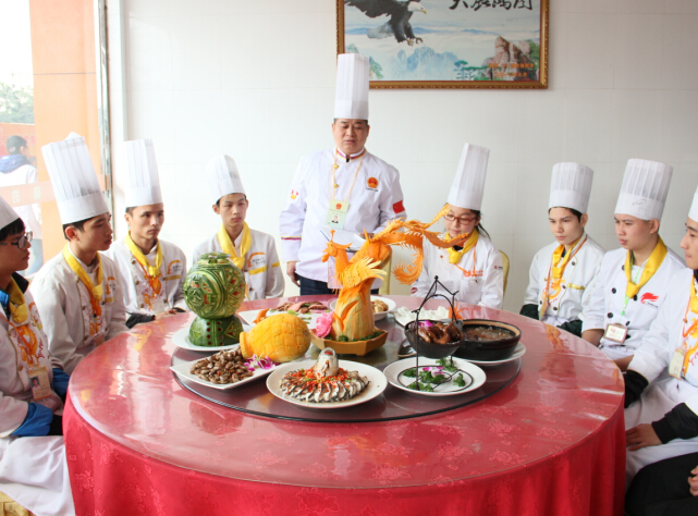 广西华南烹饪学校金牌五班通过此次宴席考核展台,不仅能够展示班级的宴席制作能力,提高华南烹饪学子的团体协作能力,更能进一步增强学子对宴席制作知识的掌握。广西华南烹饪学校将继续为培养更多符合社会需要的复合型、专业型烹饪高级人才这个目标而不懈努力。对于美食,如果你有话说,如果你想“动手”,那么,亲爱的朋友,广西华南烹饪学校诚邀你的到来,在这里,让我们一起遨游美食的海洋!