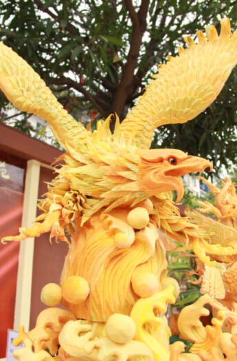 在广西华南烹饪学校第二十届烹饪大赛的雕刻赛场上,果蔬雕刻构成了一道道靓丽的风景线。一双双巧手、一颗颗慧心、一把把小刻刀,创造出无数精美作品——高山巍峨,流水徜徉;绿叶繁茂,红花多香;青虾一对,相得益彰……无数诗意盎然,精美雕刻百花争艳。