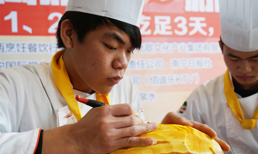 而在开幕式现场有一群身怀绝技的华南学子为吃货们送上了精彩的表演。广西华南烹饪学校的师生都拿出绝手本领,让邕城的吃货们不但大开眼界,更是一饱口福。在狂欢节现场,油炸的、香煎的、烘焙的、鲜榨的……华南的大厨们都拿出了看家本领,吃货们也是敞开了“肚皮”一路吃下去。对于这么多美食,吃货们表示,能在一个地方吃到各种美食,而且味道还这么正宗,大型蛋糕王更让现场疯狂。看表演,品美食,这些充满娱乐性的活动,让吃货们大加赞誉,纷纷表示不枉此行。华南学子们精彩的表演,展现出了我校学子精湛的技艺。