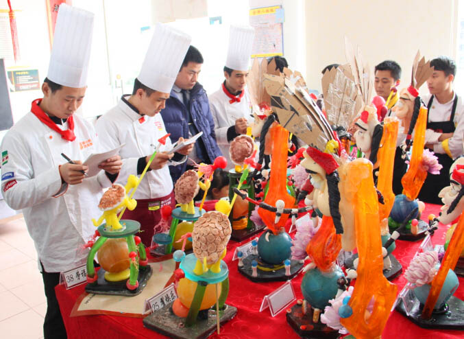糖艺作为一门艺术,在国际西点市场早已是盛名在外。近日,在广西华南烹饪学校的金牌教室展台上出现了这样一幅绝美的画面,闪亮的糖艺作品活灵活现的摆放在鲜艳的展台之上,让参观的学生顿时尖叫称奇。这就是广西华南烹饪学校糖艺晚班的成果展,他们为这个冬天送上了又一道靓丽的风景线。