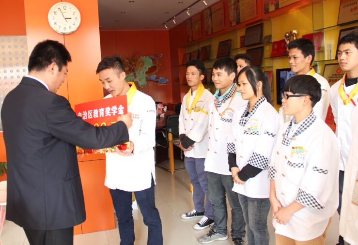 为鼓励我校学生努力学习、奋发向上,促进良好学风校风建设。近日,我校在招生办大厅隆重举行广西华南烹饪学校2014年度自治区政府教育奖学金颁奖表彰大会。广西华南烹饪学校校长、校区专业负责人朱伟、教务科老师代表等出席了颁奖仪式。