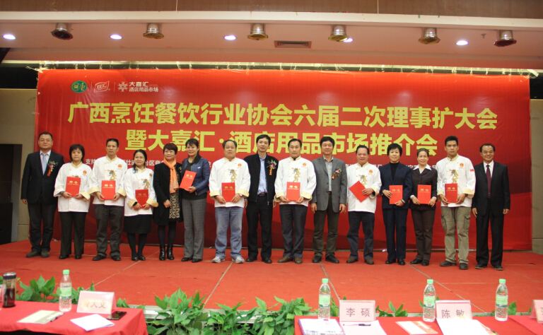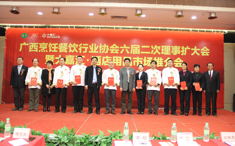 1月29日,广西烹饪餐饮行业协会在南宁大嘉汇召开六届二次常务理事会扩大会议,广西烹饪餐饮行业协会老领导、各市餐饮行业协会(商会)会长以及各地餐饮企业代表、战略合作伙伴代表、媒体代表200多人参加了大会,共同总结2014年行业形势,探讨2015年工作思路。
