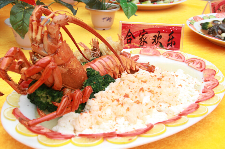 广西华南烹饪学校所设计的珍馐飘香宴,集各菜系的精华,既体现了传统名菜的风采,又表现出广西华南推陈出新的特色,整套宴席分为雕刻、冷拼、热菜、翻糖蛋糕、点心等几大部分,充分展示了青春活力激扬,华南珍馐飘香的韵味。此次团体展台组成有大型泡沫雕、热菜、冷拼、点心等各式菜系组成。华南学子现场展台泡沫雕形式各式各样、形态万千。131班的《日月同辉,龙凤呈祥》、134班的《东方美食》、136班的《全鱼宴》、金牌五班的《八仙赏宴》、《盛世龙蟠寿宴》、《壮乡情》、《双喜临门》、……,其中131展台《日月同辉,龙凤呈祥》充分体现了学子精湛的厨艺,以“八桂圣宴”为主题,雕刻“龙凤呈祥”,配以“寓意为双宿双飞”的冷拼,热菜部分由“合家欢乐”大龙虾、“花好月圆”、“九转大肠”等六款作品组成,四款点心,中西结合,款款相映,珠联璧合。