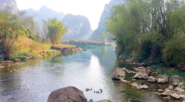 布泉风景区,素有“小桂林”之称,位于广西隆安县布泉乡,地处大石山区,乡境呈三角形,东西横距20公里,南北纵距11公里,总面积173.4平方公里。有布泉河、龙抬头、大天坑、独秀峰、更望湖、月牙山、布泉溶洞等多个著名景点。