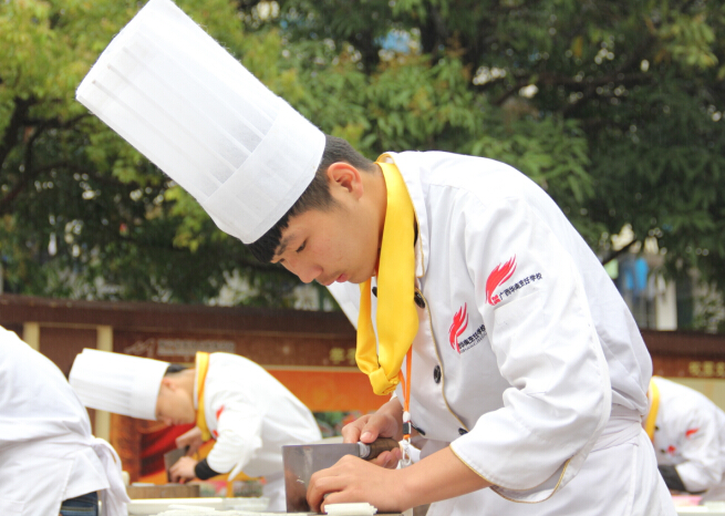 万物复苏的早春,虽然下着蒙蒙细雨,但是也阻挡不了同学们的学习热情。3月14日,在广西华南烹饪学校明秀校区广场上,华南烹饪学校“2015年刀工擂台赛”正式打响,整齐队伍,精彩的刀工成为了学校一道亮丽的风景线。