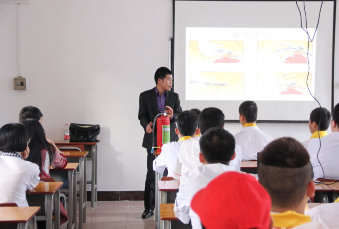 为普及消防安全知识,增强校园学生消防安全意识,预防重特大安全事故发生,确保老师和学生生命财产安全。3月17日下午,南宁天安消防服务中心的梁教官应广西华南烹饪学校邀请,对学员一百余名老师学生代表进行消防安全知识授课。