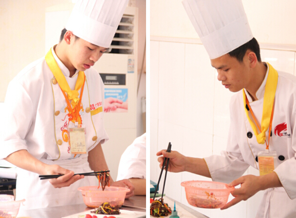 本次基础凉菜班级比赛内容是一道指定菜品,老师们将会根据整体造型、摆盘、颜色搭配、刀功以及调味等方面进行综合打分。凉菜制作是作为一名厨师很重要的一项技能。广西华南烹饪学校的学生在两年的学习中,除了要学习热菜的烹制外,更会专门学习到凉菜、雕刻、火锅、调酒、中西面点等技能。