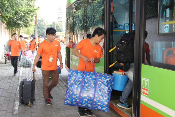 同学们搬运行李