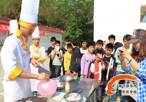 活动中,我校的同学表演了在“气球上切肉丝”、“豆腐丝穿针”等节目,给田林县八桂中学的同学们上了一堂生动实用的技能课,同时,在黄盛大师的带领下我校师生还现场做了几道美味的佳肴给在场的老师和同学们品尝,展示我校高超的技术,还发放了我校宣传资料,宣传我校培养高技能人才多项政策措施,各种优惠、激励和奖励政策,取得了很好成效。