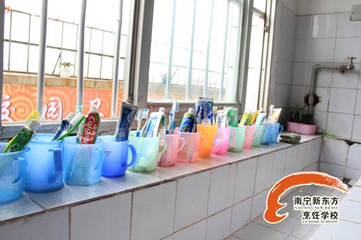 “一线”摆放的牙杯牙刷