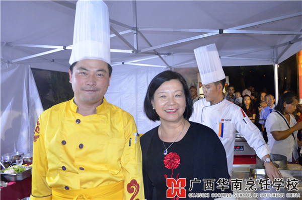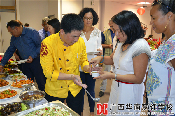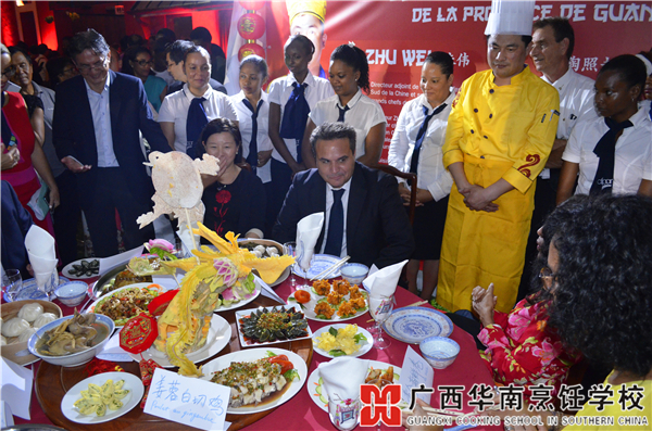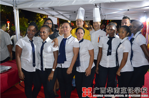 在“中国年”活动中,我校朱伟和陶照起两位大师向法国留尼旺民众展示冷菜拼盘、宴席等具有中国特色的美食,面对玲琅满目的中式餐点,外国友人迫不及待的品尝起来,纷纷竖起大拇指啧啧称赞。美食可以促进人与人之间友谊的增进,他们期待着与广西华南烹饪学校更加密切的合作,也希望有机会能到广西华南烹饪学校来学习生活,感受不一样的中国味道。