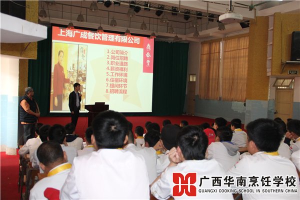 近日,上海广成餐饮管理有限公司来我校开展招聘宣讲会,由该公司人力资源部招聘主管孙主管负责宣讲,广西华南烹饪学校的毕业生学子参加了本次宣讲会。