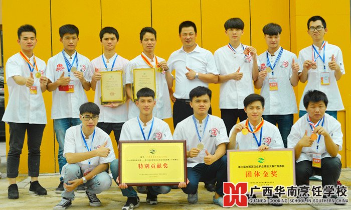 6月5日,2016“海天黄豆酱杯”第六届全国饭店业职业技能竞赛(广西赛区)正式落下帷幕,广西华南烹饪学校作为广西饭店业知名教育品牌,共21名师生参加比赛,他们分别参加了,热菜、雕刻、冷拼、西餐等项目的比赛。经过两天的角逐,我校获得团体金奖两枚,在校学生分获得5金、4银、3铜的好成绩。此外,我校另有4名毕业生代表所工作的酒店进行参赛,也同样取得了4金、2银的好成绩。