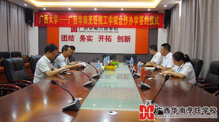 当日上午,苏兆成院长一行抵达广西华南烹饪学校中尧校区,受到了我校副校长朱伟、就业主任陈新操等相关领导和教师的热烈欢迎。苏兆成院长在朱伟副校长的陪同下参观了校园。在参观中餐实训室时,苏兆成院长在即兴讲话中,鼓励同学们认真学习,夸奖同学们都是好样的,邀请同学们到广西大学继续深造学习并鼓励同学们到西大美食街创业。