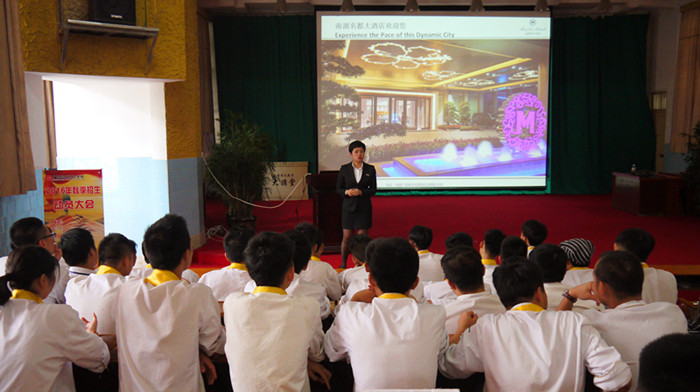7月12日下午,广西著名地标性酒店南湖名都大酒店来到我校进行招聘,南湖名都负责人先后从企业文化、服务宗旨、薪资待遇等方面介绍了南湖名都大酒店,让同学们对酒店有了初步的认识和了解,本次招聘南湖名都大酒店也向同学们开出了行业内较高的薪酬。