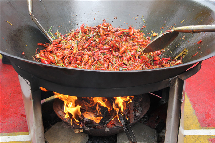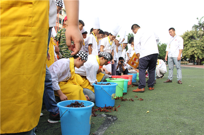 7月20日上午,广西华南烹饪学校小龙虾美食节在中尧校区举行。早上8点,在各班老师的带领下,开始刷洗小龙虾、去除虾线、进行烹制,直至上午11点,香辣、麻辣、孜然、蒜香、五香、酱香等六种口味的小龙虾才陆续出锅摆盘,放到长廊上的展台供参与美食节的区政府领导、广西餐饮界的中国烹饪大师和餐饮同行们以及来校参观报名的各位家长和同学们品尝。