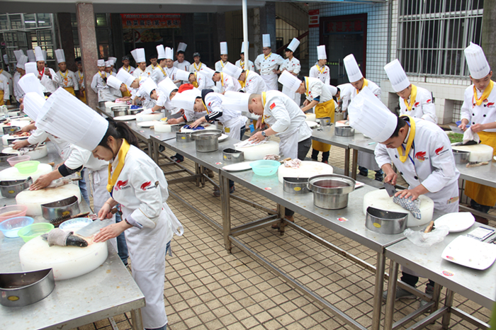 中国有菜肴数万种,而导致菜肴千变万化的主要因素就是刀工。烹饪行业历来就有“三分炉子,七分墩子”、“无刀不成菜”之说,由此可知,刀工好不好对一个厨师来说是至关重要的。广西华南烹饪学校毕业生在业界素来就有“基本功扎实、烹饪技能过硬”的美称。因此,为更好提高学生刀工技巧,培养学生勤练基本功的性格,学校将于8月29日上午,在中尧校区足球场举办刀工比赛。