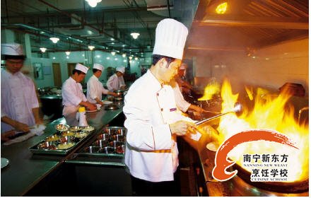 广西华南烹饪学校学生上灶实习