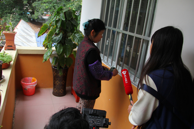 3月3日上午,在中尧社区工作人员的带领下,南宁电视台的记者走进了甘素珠阿姨目前在职的广西华南烹饪技工学校。开始采访这位热心公益的老人。刚开始,甘阿姨并不愿意接受采访,觉得这是一位共产党员应该做得。在社区工作人员的劝说下,甘阿姨接受了采访。记者通过镜头,记录下了甘阿姨“平凡无奇的一天”。