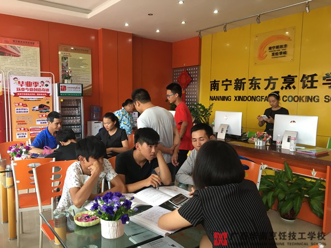 2017年中高考已告于段落,广西华南烹饪技工学校也迎来了夏季报名高峰期,不少初中高生与家长一起来到广西华南烹饪技工学校参观、报名。