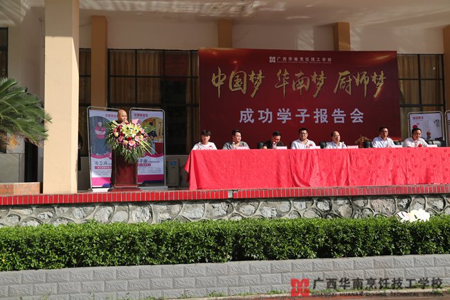 2017年9月28日上午,广西华南烹饪技工学校“中国梦 华南梦 厨师梦”成功学子报告会隆重举行。无数的华南人都在以自己的经历证明一句话——“今天我以华南烹饪为荣,明天华南烹饪以我为荣”!是的,荣耀是他们的,但同样也属于所有华南人。