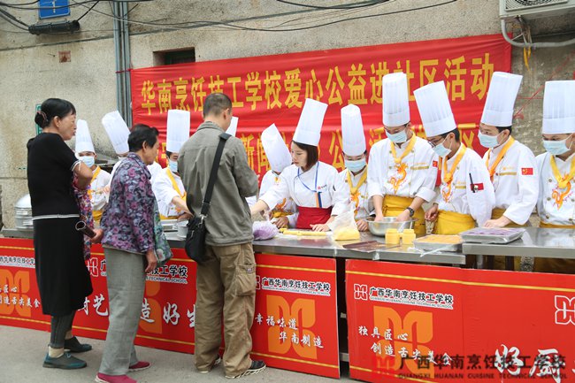 香喷喷的南瓜球和紫薯蛋糕端上了桌,小区里的老人们脸上挂满了笑容,和一群年轻的学生们聊着家常心里乐开了怀。为传承中华民族尊老爱幼的优良品德,引导学生传递正能量,创建和谐文明校园,营造关爱老人的良好道德风尚,近日,广西华南烹饪技工学校联合南宁电视台《新闻社区》栏目在纬武社区开展社区公益爱心活动,为社区居民送去了关心和祝福。