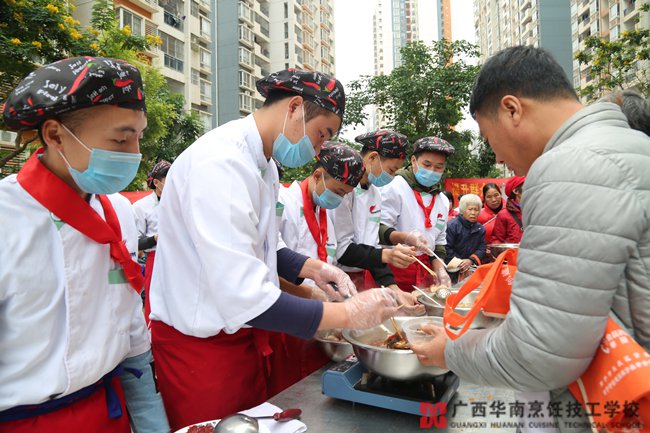 美味的麻辣火锅已经制作好,居民们开始品尝起了香味四溢的火锅,他们一边大快朵颐,一边对我校师生精湛的火锅技术大力称赞。一位现场的居民周女士说到:“感谢广西华南烹饪学校的进社区活动,让我学到了很多,我学到了做火锅的方法和烹饪的过程,受益很深,非常有帮助。”