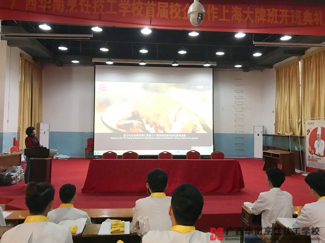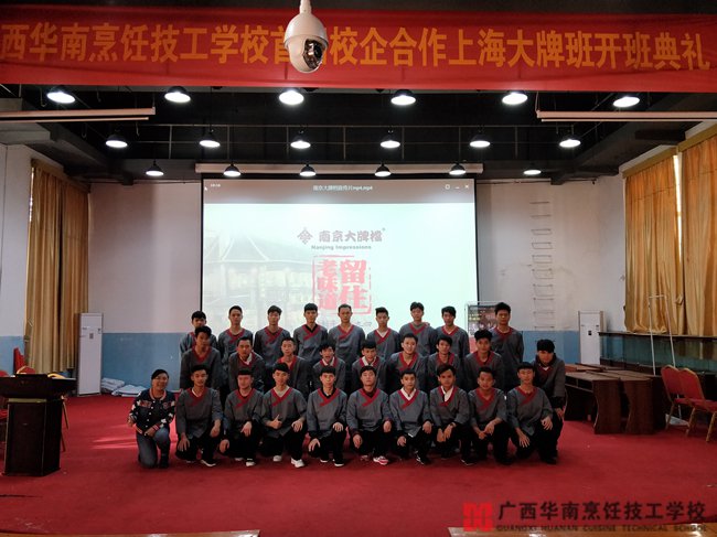 12月6日上午,广西华南烹饪技工学校举行校企合作定向培养专业开班仪式。南京大牌档校企合作单位的有关领导,学校就业办等相关领导,定向班学生参加了开班仪式。