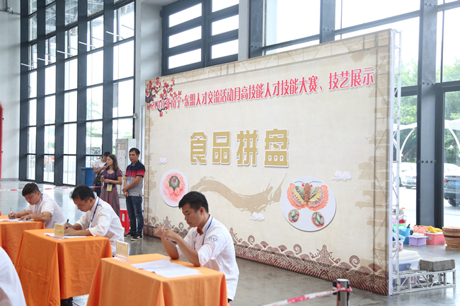 本次活动共有南宁市数十家单位、300多名高技能人才同台竞技。我校也派出了9名选手,参加食品拼盘项目的比赛。
