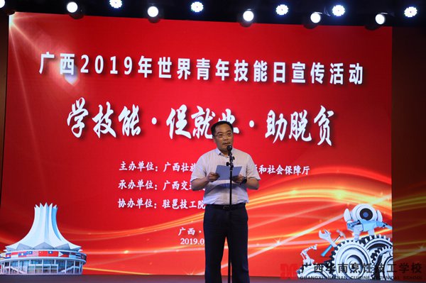每年7月15日是联合国确立的“世界青年技能日”。今年,由广西人力资源和社会保障厅主办的“学技能促就业助脱贫”广西2019年世界青年技能日宣传活动在南宁市民族广场举行。我校作为区内专业类的烹饪技工院校,也参与到了活动中。本次活动由赵志权校长带队,多名学生参与其中。向现场观众展示了烹饪专业、西点专业作品和技艺。