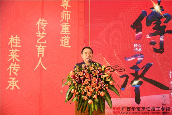 9月2日,由中国烹饪协会名人堂主办,广西烹饪协会协办,广西华南烹饪技工学校承办支持的“何逸奎尊师师徒传承鉴证盛典”在广西华南烹饪技工学校东盟校区举行。中国烹饪协会副会长,名人堂秘书长李春祥到场指导。湘菜大师许菊云、鄂菜大师卢永良等多位业内知名人士前来观礼。