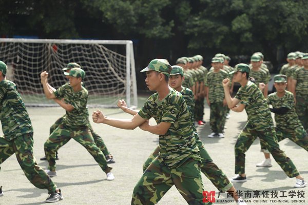 近日,广西华南烹饪技工学校新生秋季军训顺利完成。