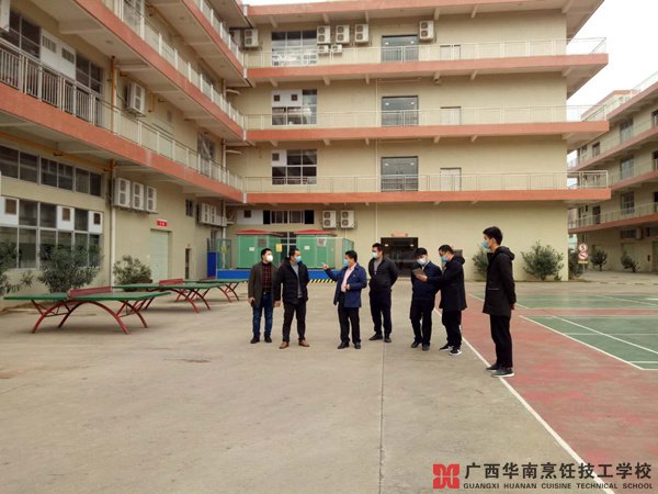 2月18日,东盟经济技术开发区管委会黄副主任及教育文体局王局长一行,来我校广西华南烹饪技工学校检查疫情防控工作落实情况,现场对我校疫情防控工作进行指导,也对我校疫情防控工作给予了肯定:"广西华南烹饪技工学校在疫情防控工作中,按规定进行消毒、体温检测、登记,设立隔离室,制定了防控工作方案,工作落实到位,是大家学校的榜样。"