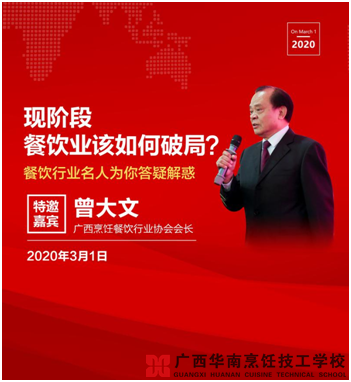2020年初,突如其来的武汉新冠病毒肺炎疫情,使广西餐饮业遭受到前所未有的打击。疫情之下,餐饮企业该如何闯关?3月1日,广西烹饪餐饮行业协会会长曾大文先生做客广西华南烹饪技工学校直播间,针对当前情况,深度分析了新冠疫情对广西餐饮业的影响,及疫情过后餐饮行业发展的展望。