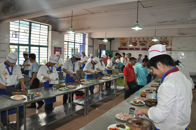 立德!立才!立业!中华大地,一大批名师主厨从这里孕育!实操大厅里学员们正在进行基