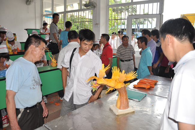 精美呈现细于专业,精于品质,华南烹饪,打造中国烹饪第一品牌。招生老师正在点评学员作品。
