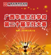 2014年12月24日,广西华南烹饪学校2014年第二十届烹饪大赛在明秀校区隆重开幕。广西壮族自治区人力资源和社会保障厅职业能力建设处处长张远、广西壮族自治区人力资源和社会保障厅职业能力建设处主任陈振成、广西壮族