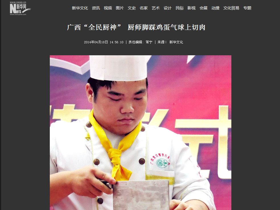 双脚踩着鸡蛋在气球上面切肉丝,蒙眼雕出一朵美丽的萝卜花献给水街最美的姑娘!日前,广西电视台综艺术频道《全民厨神》携手 广西华南烹饪学校 在南宁水街举行第二季启动仪式,启动仪式上不仅有我校专业的准厨师们给