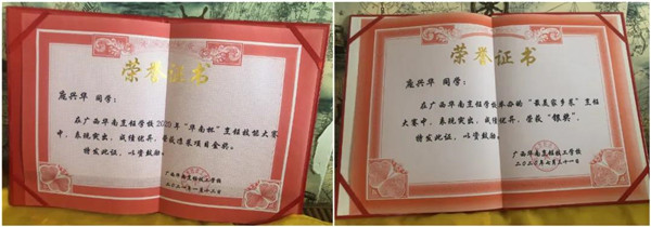 很多新生刚进来懵懵懂懂,只有一腔对烹饪的喜爱,而庞兴华却表示,在他刚入学不久,基础还不算特别扎实的时候就开始参加比赛,“重在参与”一词是对当时的他最好的诠释。而经过一年多的成长,他已大有进益,这位“低调的学霸”温和而真挚地说这并不是他第一次获得奖项,在“华南杯”烹饪技能大赛、最美家乡菜、精美凉菜争霸赛等比赛中都取得了不错的成绩。