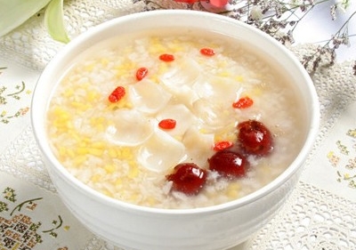 做法:山药洗净削皮切块,将糯米、红枣洗净后与山药一起放入锅中,加水共煮,先武火煮开再转文火慢煮,至粥成时加入适量白糖或冰糖即可。