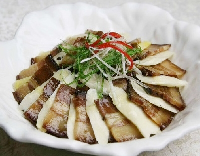 材料:春笋、猪肉。先把春笋剥去壳,切去老根,再切成片,然后将肉切碎,用生抽、盐、料酒、胡椒粉腌制10分钟入味。然后热锅热油,爆香蒜末,倒入肉丝翻炒2分钟盛起待用。锅重新洗一遍,倒入适当的底油,油温后倒入春笋段煸炒,放入盐、味精和酱油;中火焖烧5分钟左右至汤汁收干入味,撒一些香葱就可以了。