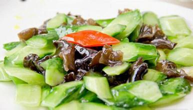 青瓜富含维生素、胡萝卜素和钙、磷、铁等营养成分,有美容护肤、清热解毒的食效,是时下非常受欢迎的时尚食材。在清洗青瓜时,可选择用盐水冲洗,这样做的好处是可以避免青瓜内的维生素流失。青瓜的烹法五花八门,蒸、焖、炒、煮皆可,这次推荐以红椒和木耳配搭炒制亦为风味。