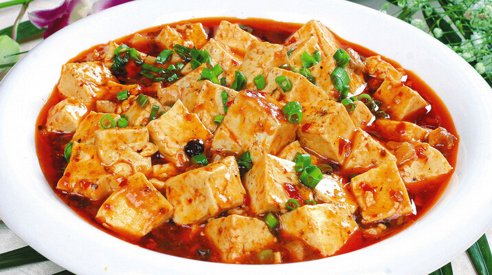 麻婆豆腐,据说是清同治初年成都市北郊万福桥一家小饭店店主陈森富之妻刘氏所创制。麻婆豆腐的特色在于麻、辣、烫、香、酥、嫩、鲜、活八字陈家店铺称之为八字箴言。